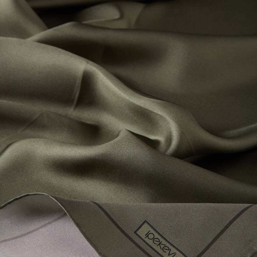 İPEKEVİ HAKİ YEŞİL ÇERÇEVE TİVİL İPEK EŞARP