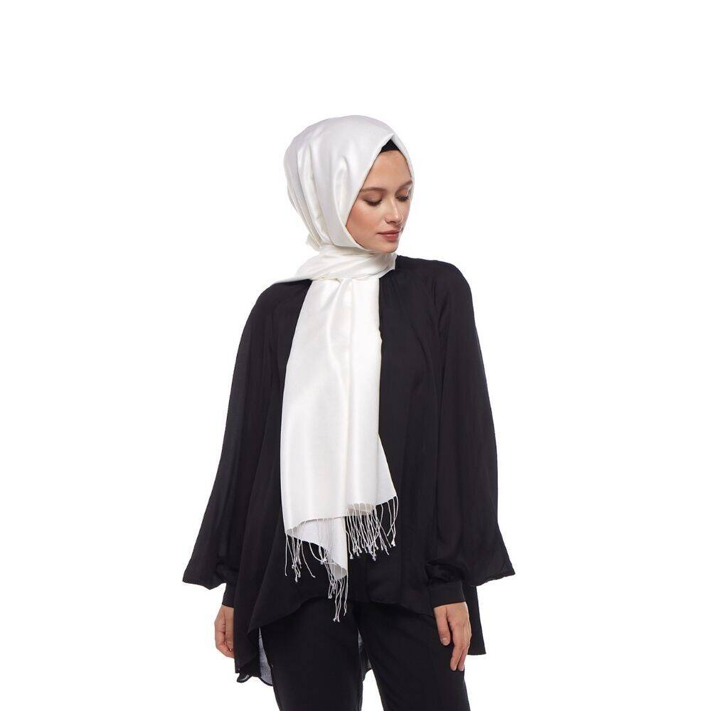 İPEKEVİ İNCİ BEYAZI ÇİFT TARAFLI İPEK ŞAL