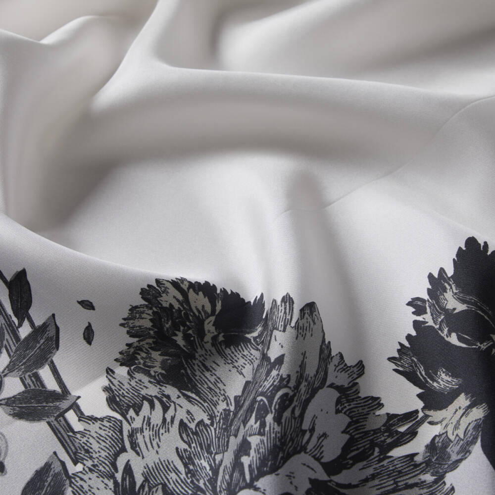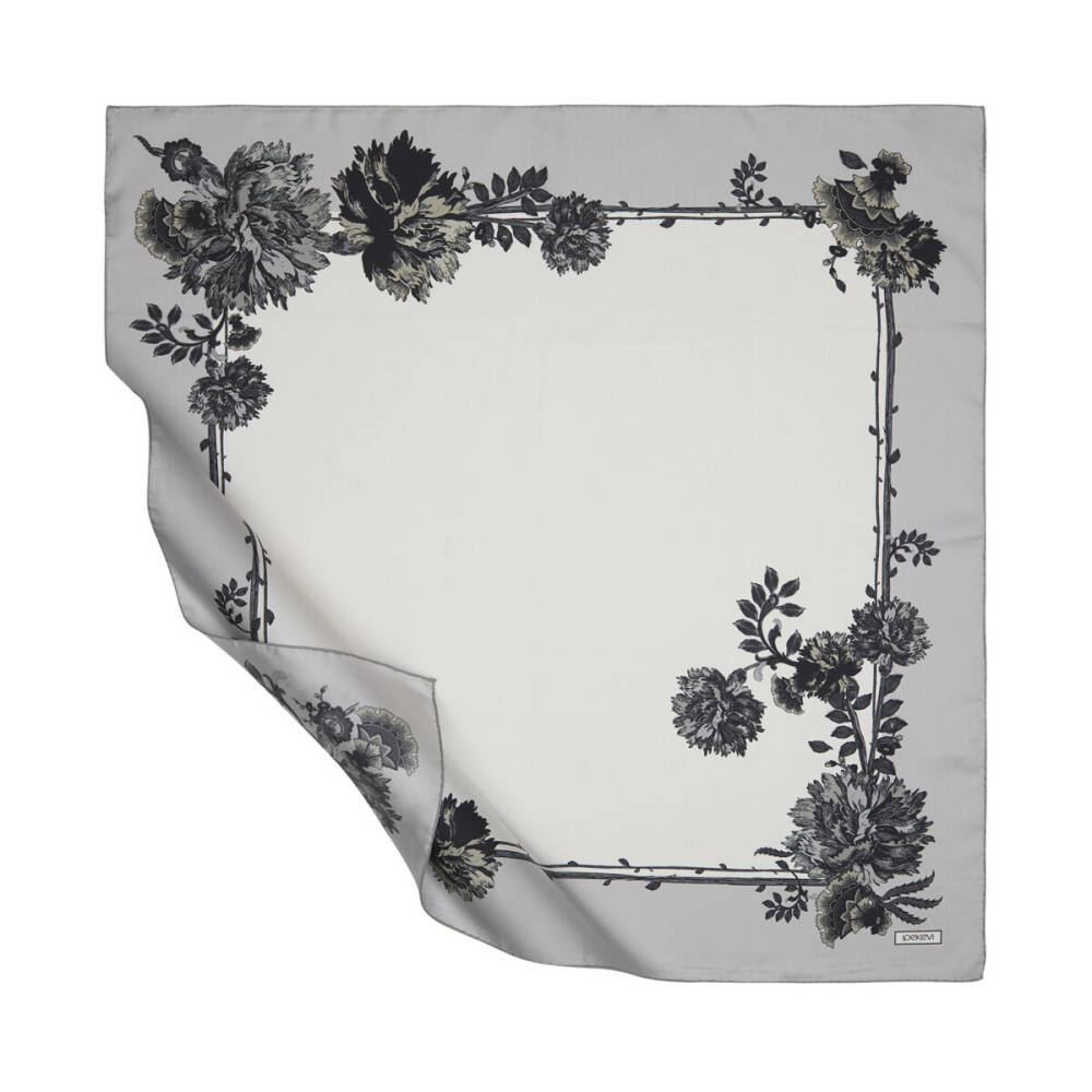 İPEKEVİ BEYAZ GÜMÜŞ KARANFİL ÇİÇEĞİ TİVİL İPEK EŞARP