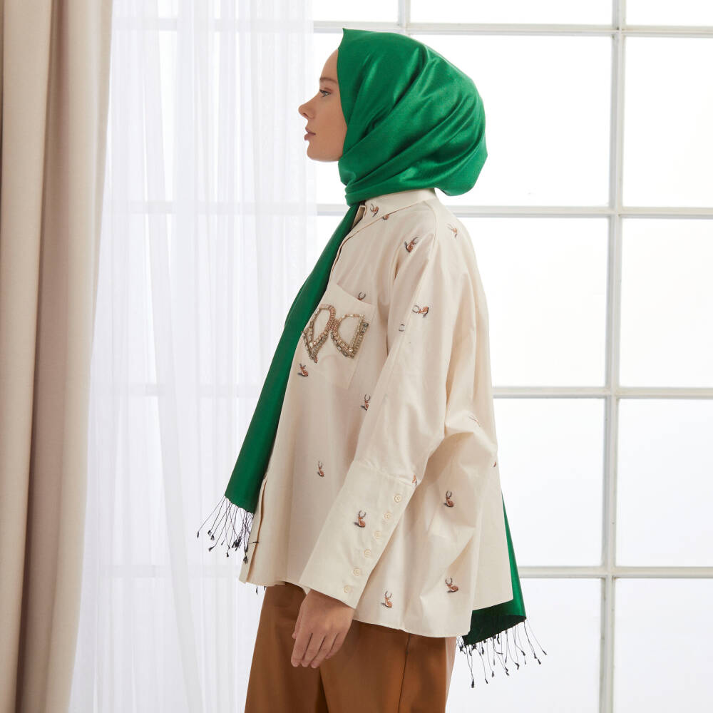 İPEKEVİ ZÜMRÜT YEŞİL ÇİFT TARAFLI İPEK ŞAL