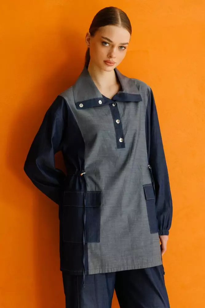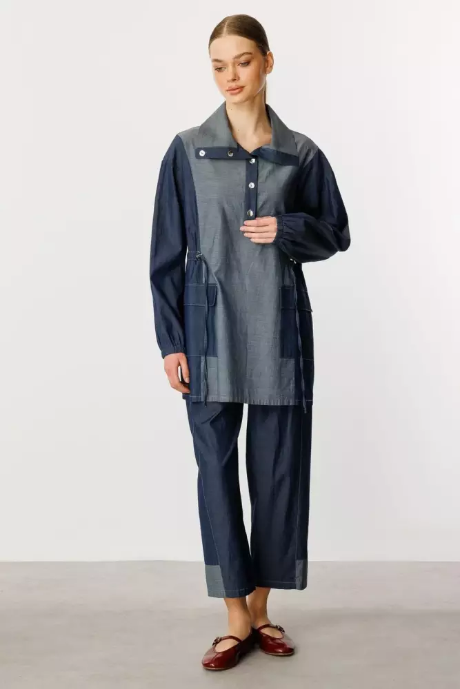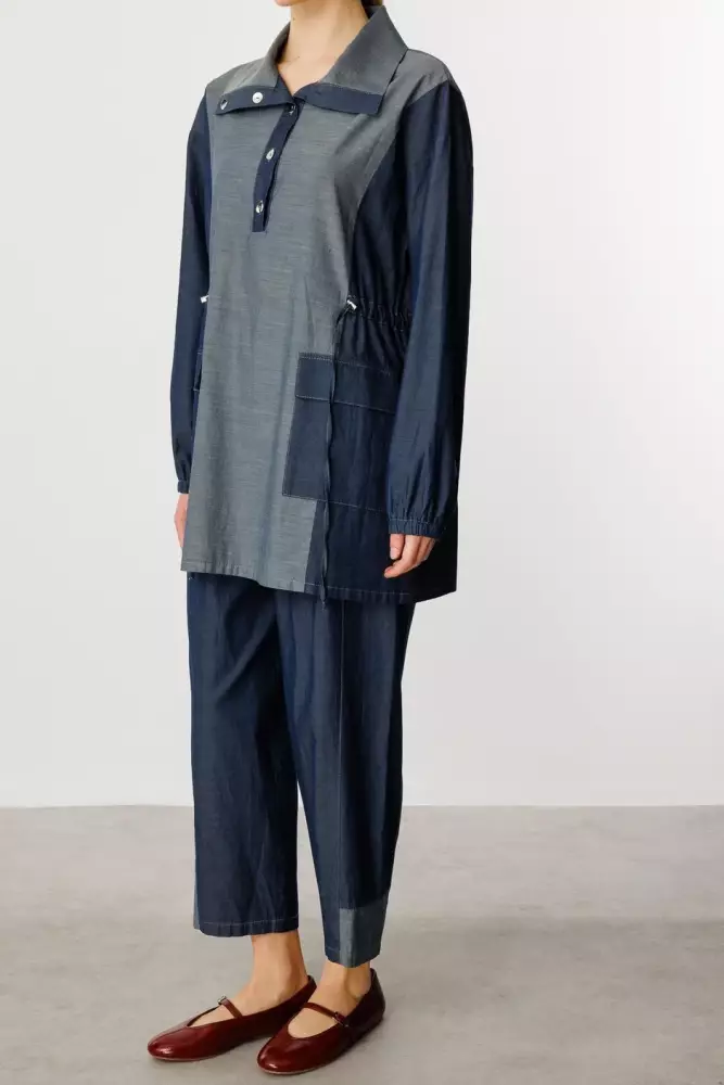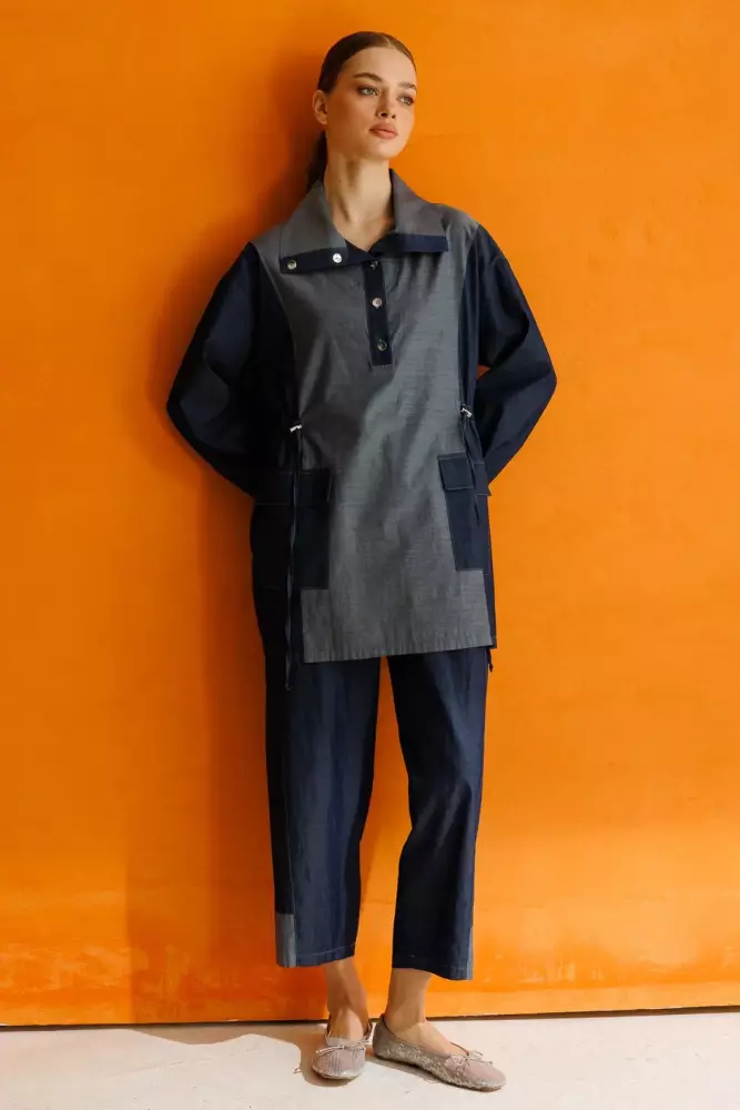 Sou %100 Pamuk İnce Denim Pantalon Kombin Takım