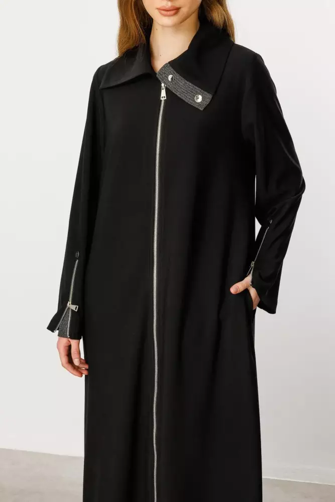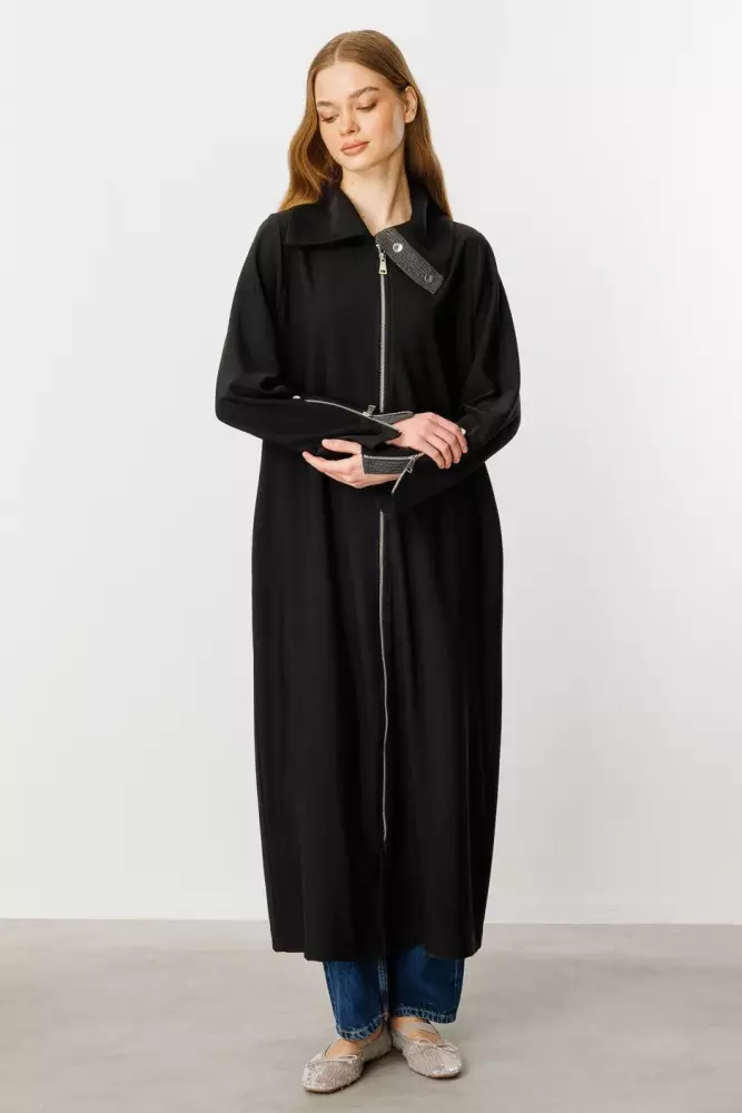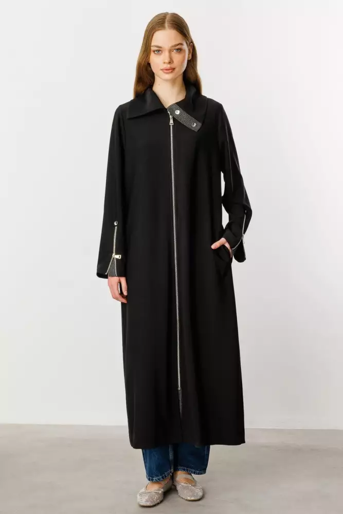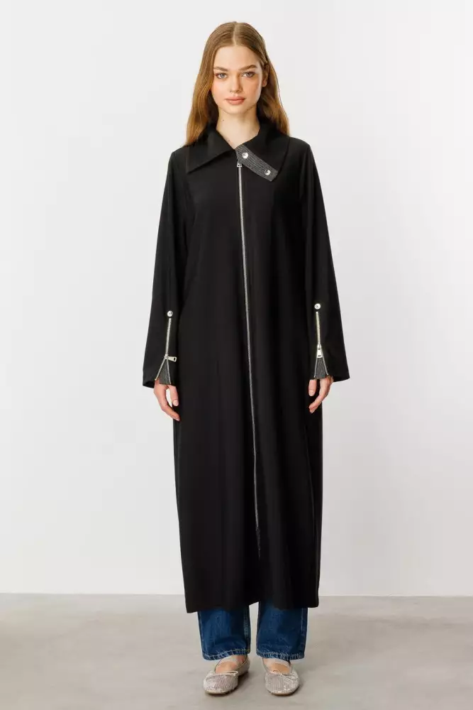 Fermuar ve Kontrast Garni Detaylı Rahat Dökümlü Kap/ FERACE Üretim Ülkesi: Türkiye Sezon: 2025 İlkbahar Yaz Kumaş İçeriği: %100 Polyester Boy Uzunluğu: 128 cm Ürün Ölçüleri 40 Beden için: Göğüs 108 cm, Bel 71 cm,Basen 122 cm. Bedenler arası 4 cm fark etmektedir. " Manken Ölçüleri Giydiği Beden: 38 Boy: 175 cm Göğüs: 75 cm , Bel: 60 cm , Basen: 88 cm