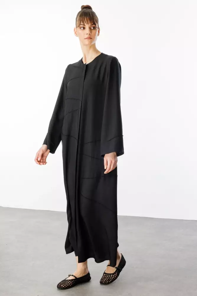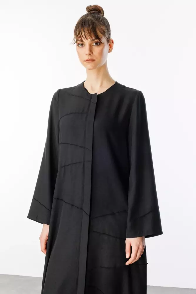 ZV Nervur Aller Dikiş Detaylı İpekçe Doku Zamansız Spor Kap/ Ferace