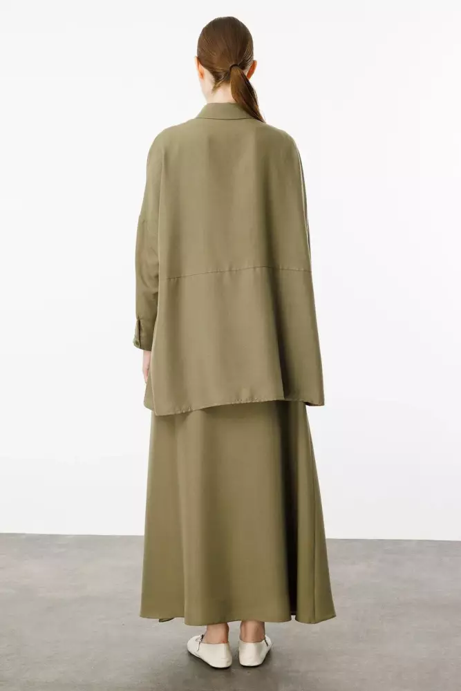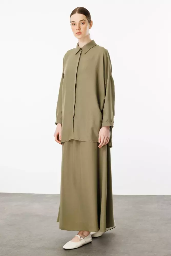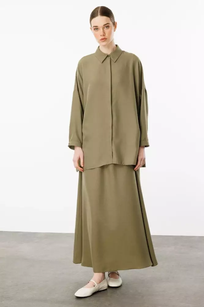 Rahat,Hafif,Sade İpekçe Kumaş Basen Örten Tunik ve Etek Kombin Takım