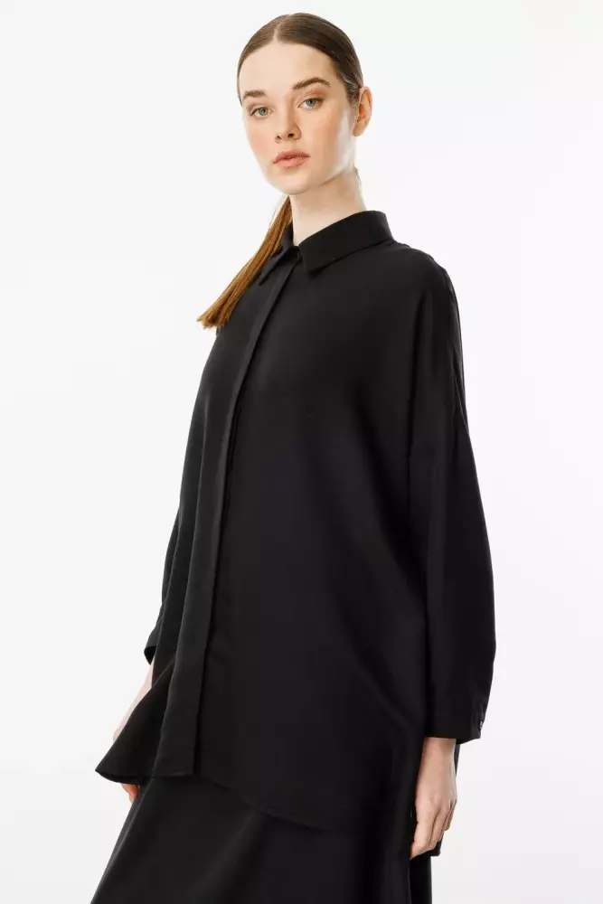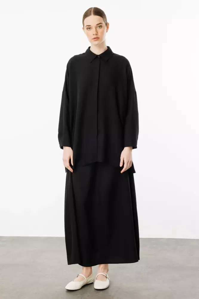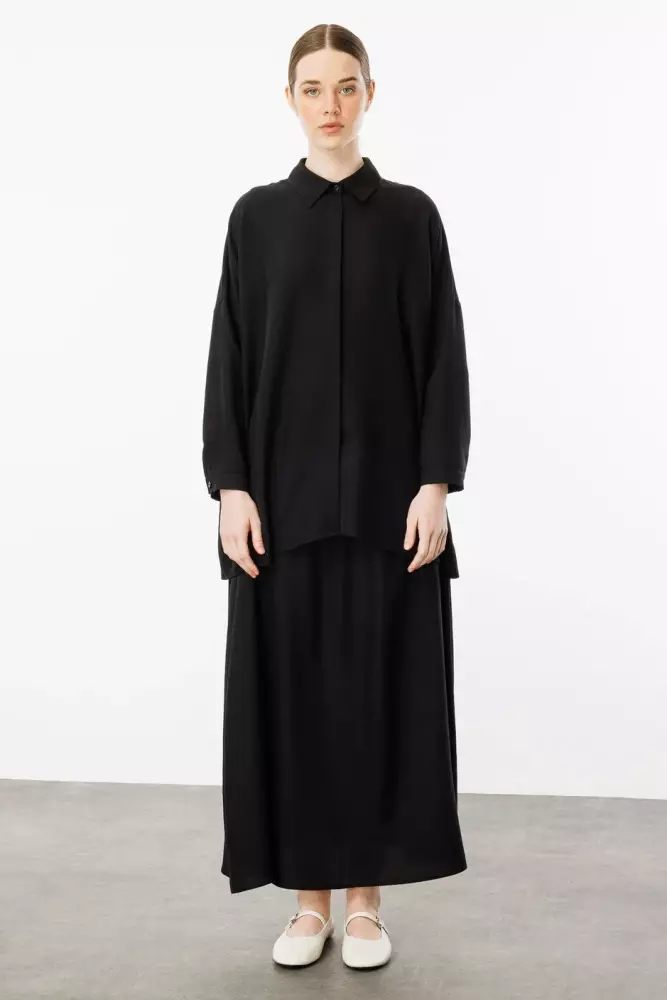 MİCCA İPEKÇE KUMAŞ ETEK TUNİK TAKIM SİYAH
