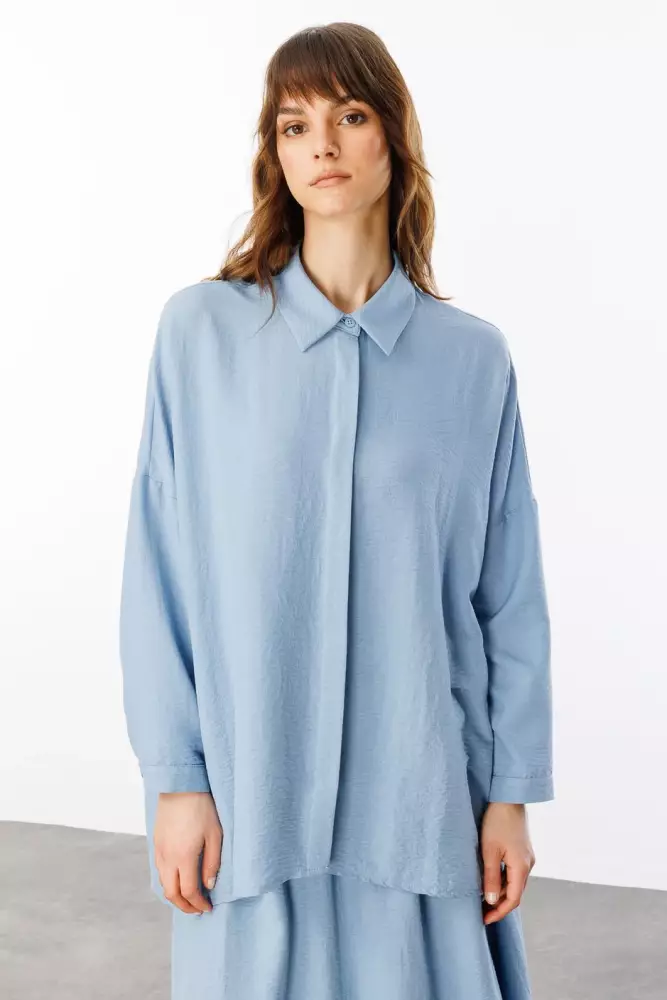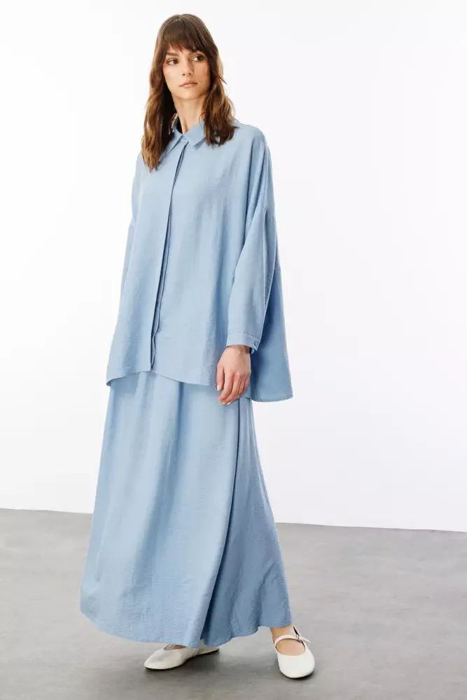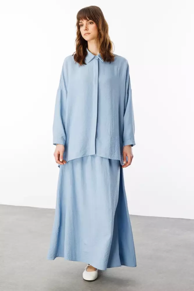Rahat,Hafif,Sade İpekçe Kumaş Basen Örten Tunik ve Etek Kombin Takım