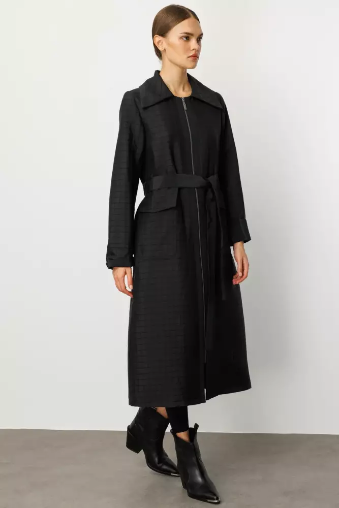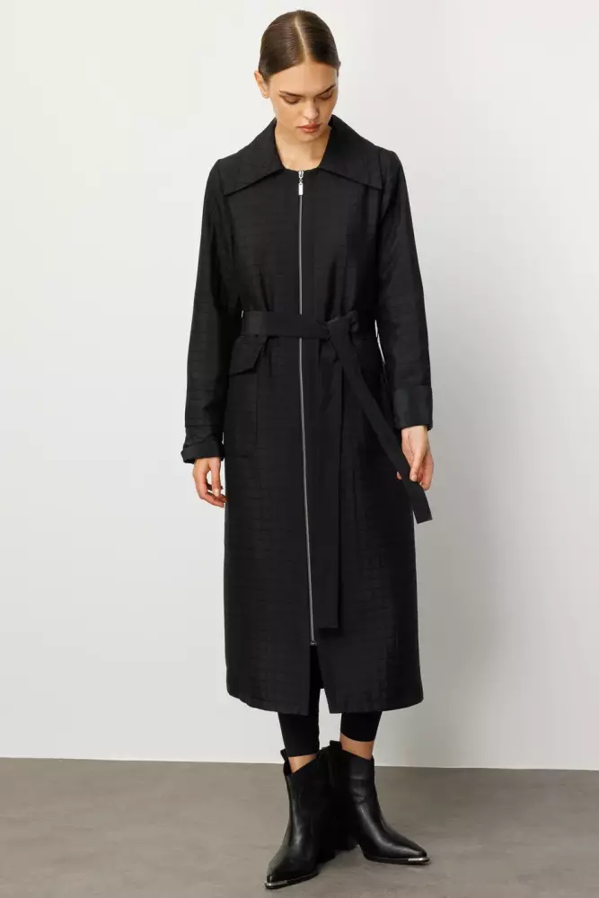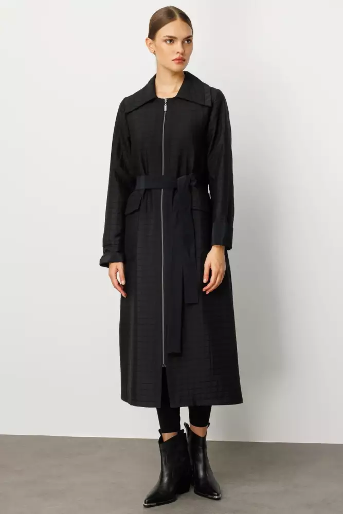 Jakar Kapitone ve Düz Garni Kumaşlı İçi Komple Astarlı Mevsimlik Kullanım İmkanı Sunan Trench Kap