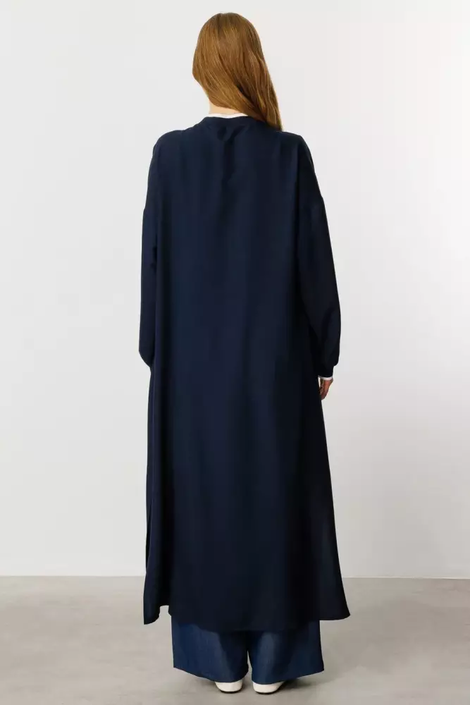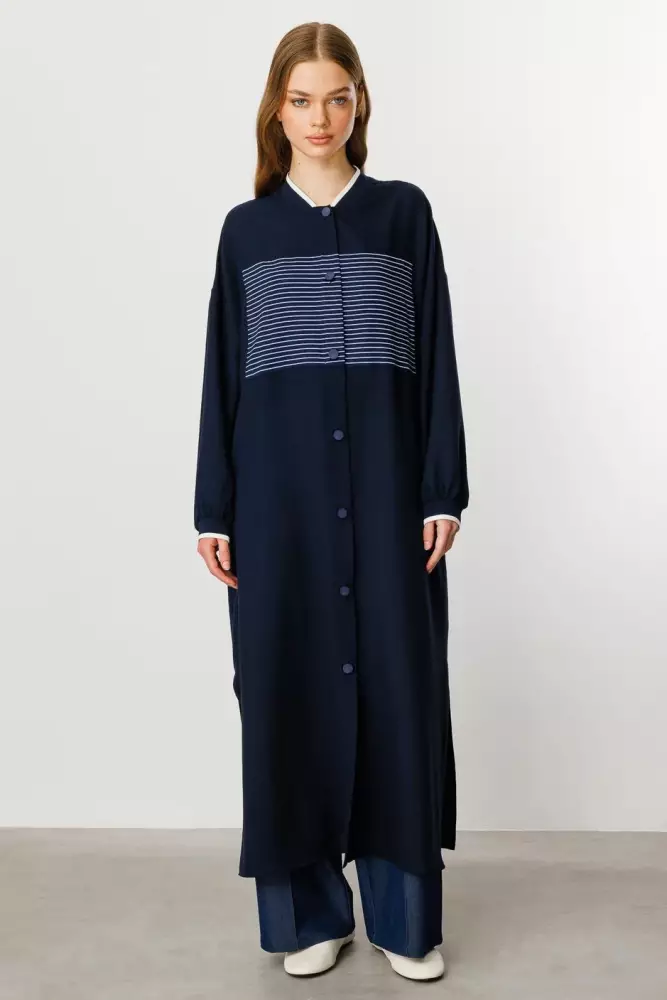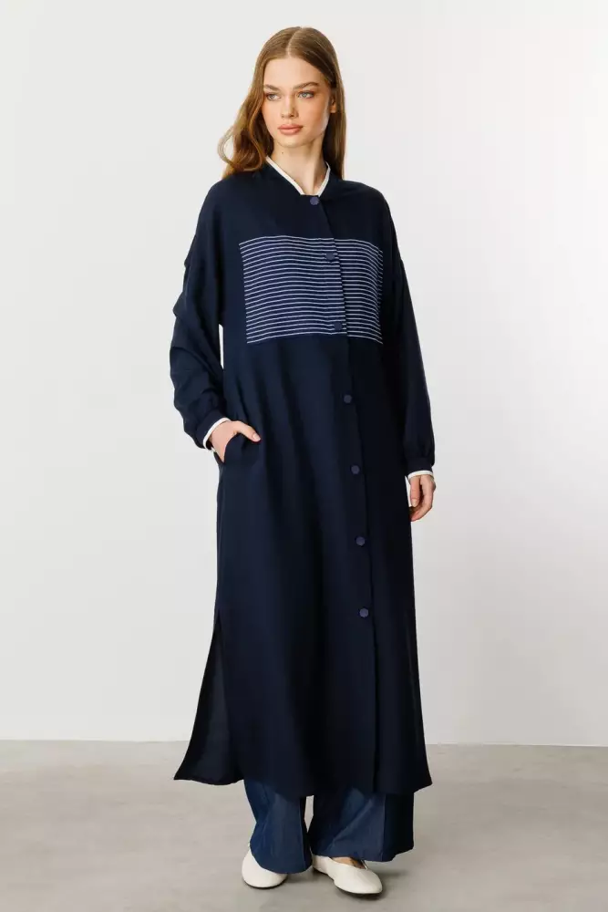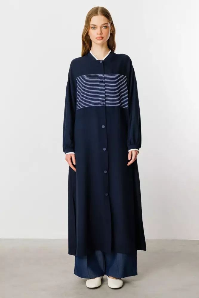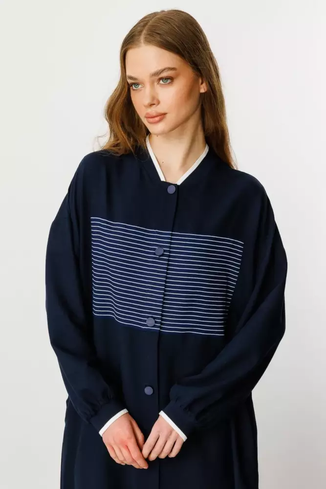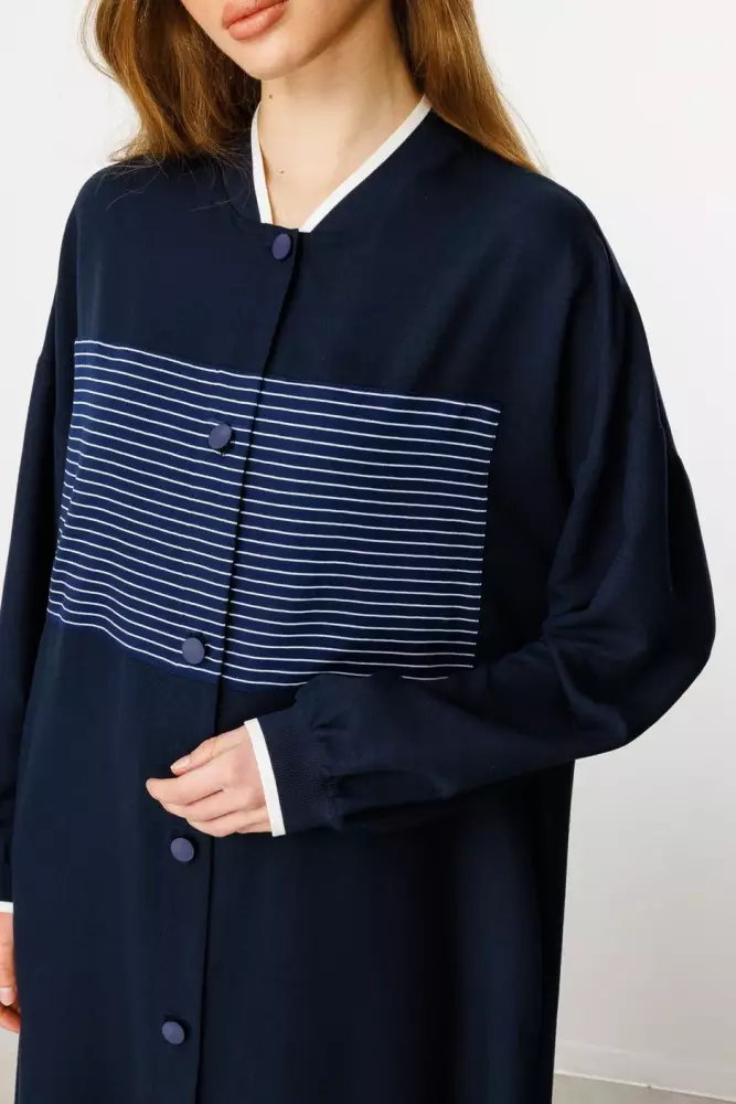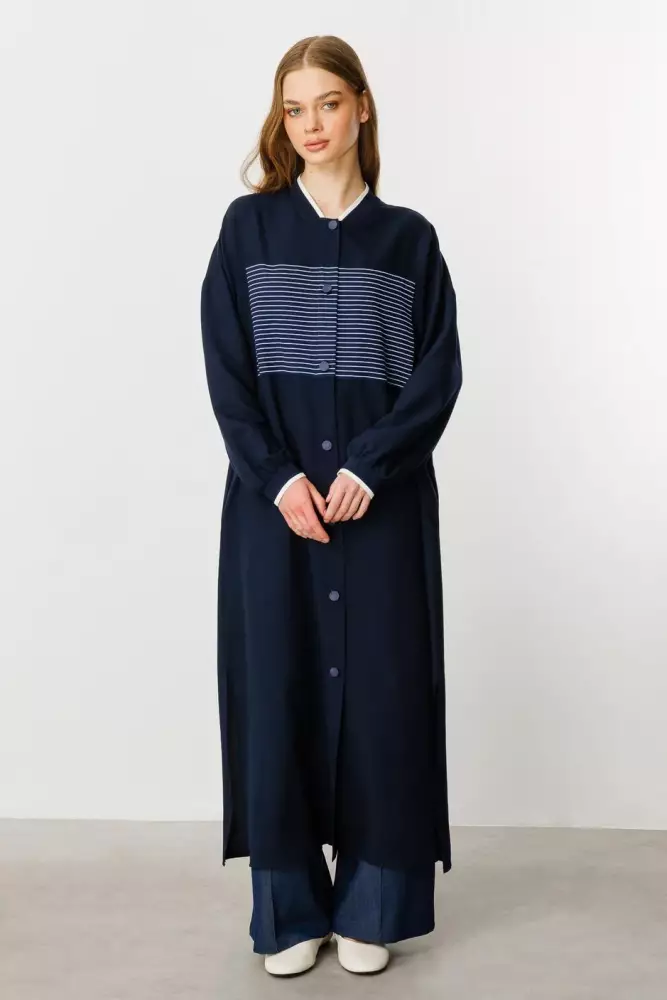 Marin Çizgi ve Ribana Detaylı İpekçe Doku Spor Ferace Kap