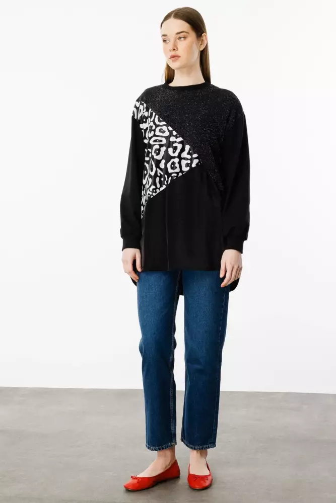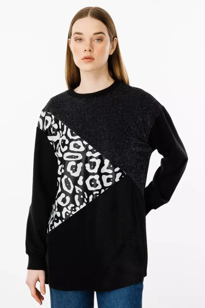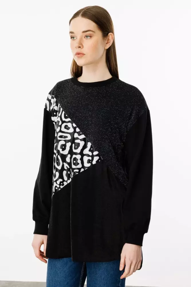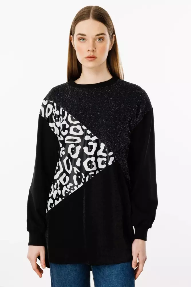 Soho ve Simli Desen Kumaş Garnili Kap/Tunik